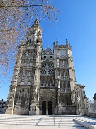 La fachada flamígera del transepto norte, concebida por Jehan Cossart, concluyó magistralmente, en el siglo XVI, la edificación de ese volumen transversal. El Renacimiento, que se introdujo tardíamente en Francia, solo legó la portada occidental, que se encuentra bajo el gran rosetón. La manera francesa triunfó en las torres disímiles que la encuadran.