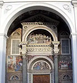 - Los frescos que adornan el portal de la catedral, con las Historias de la Virgen fueron realizados en 1536 con un estilo influenciado por la escuela de Martino Spanzotti.