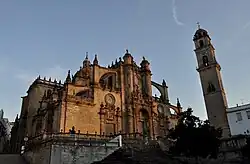 Catedral de Jerez de la Frontera, fachada principal al atardecer