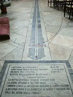 Sobre el pavimento delante del altar mayor, en 1895 el matemático Armando Perini diseñó un reloj de sol analemático; a mediodía, el rayo de sol, que entra desde el agujero del gnomon colocado en lo alto a la derecha, marca sobre el reloj de sol el mediodía local. En el extremo izquierdo del reloj, una placa del pavimento contiene la indicación de las coordinadas geográficas de la iglesia.