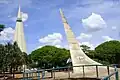 por su parte, la primera piedra, un bloque de mármol originario de la Basílica de San Pedro en Roma y bendecido por el Papa Pío XII, fue colocada en 15 de agosto de 1958. La catedral fue construida entre julio de 1959 y el 10 de mayo de 1972, en el vigésimo quinto aniversario de la ciudad. Posteriormente, el 21 de enero de 1982, fue elevada al rango de basílica menor.[2]