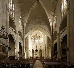 La nave fue abovedada data de finales del siglo XII y luego fue reparada en 1480. A principios del siglo XVI se añadieron capillas abovedadas y se produjeron más alteraciones en los siglos XVII y XVIII. El coro y el ábside también fueron reconstruidos a principios del siglo XVI, y las cinco capillas cuadradas apsidales fueron completadas. El ambulatorio fue creado en 1600 por la introducción de diez muelles cilíndricos, y los puestos de coro tallado del siglo XVII se colocaron aquí en el siglo XIX. El vitral es típicamente del siglo XIX.