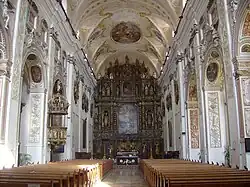 El interior de la catedral sorprende a un visitante por su masividad y la variedad de pinturas únicas. El área principal tiene bóvedas con lunetos, mientras que en las capillas a ambos lados de la nave se encuentran bóvedas del claustro.