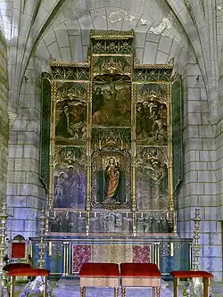 En el Altar Mayor se encuentra un retablo barroco en madera dorada, obra de Ginés López (1715-1717). Está formado por banco, dos cuerpos, tres calles y remate; ricamente decorado con hojarascas y elementos típicos del estilo, como las columnas salomónicas en el primer cuerpo y los estípites del segundo.
