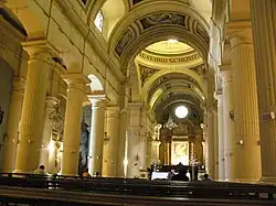El interior templo fue sometido a una amplia refacción entre 1938 y 1940, resultando de estos trabajos, el actual aspecto neoclásico de las naves y la decoración. A falta de un importante altar mayor, se puede observar una buena réplica en óleo de La Anunciación de El Greco, mientras que el gran arco previo al coro está decorado con bellos frescos cuya temática principal es la Creación del Mundo por Dios, tales frescos son obra de Félix Revol.