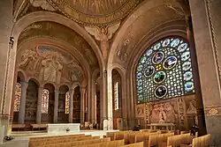 La iglesia fue completamente reconstruida en el período de entreguerras por iniciativa del canónigo Jules Froidevaux que quería equipar el lugar de nacimiento de santa Genoveva con una basílica de peregrinación digna de un santo. Un ambicioso programa iconográfico se creó y condujo a la creación de un único conjunto de frescos de la década de 1930.