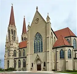 El sitio para la catedral fue comprado en 1905. A.O. Von Herbulis de Washington D. C., fue comisionado como el arquitecto. Von Herbulis fue entrenado en el extranjero y fue elegido por su conocimiento de las catedrales de Europa. Los esbozos ásperos fueron preparados en dos estilos, románico y gótico. Cuando se presentaron los dibujos, el Comité de Construcción eligió la forma gótica; Una moción pidió que el diseño sea aprobado por unanimidad. Von Herbulis modeló la Catedral sobre la base de un templo de Viena con el cual se había familiarizado mientras estudiaba en la universidad de Viena.