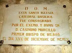 Placa conmemorativa de la consagración de la catedral basílica, el 30 de diciembre de 1955