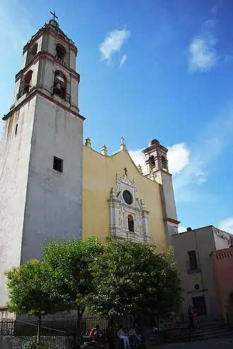 El templo presenta planta de cruz latina, consta de una sola nave y crucero, donde se levanta la cúpula octagonal, coronada por una pequeña linternilla. El templo cuenta con dos torres, que constan de tres cuerpos. Así también, el conjunto consta de dos capillas y un convento.