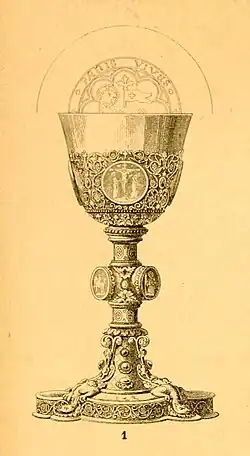 215. a b c d Stimolo, Brigitte. «Chapelle de l’orfèvre Placide Poussielgue-Rusand» (en francés). Ministère de la Culture. Consultado el 22 de junio de 2023. «Museo catedralicio del Catedral de Amiens en donde se habla de las piezas realizadas por Placide Poussielgue-Rusand, que incluye una copia del mismo cáliz.»