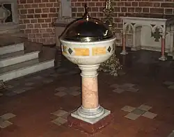 182. a b Piedrahíta Echeverri, Monseñor Javier (2002). «Cap. 7, La Decoración de la Catedral (Pilas de agua bendita)». Monografía Histórica de la Catedral-Basílica la Inmaculada de Villanueva en Medellín. p. 31.