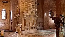 162. a b c d e f g h i Piedrahíta Echeverri, Monseñor Javier (2002). «Cap. 7, La Decoración de la Catedral (El Baldaquino)». Monografía Histórica de la Catedral-Basílica la Inmaculada de Villanueva en Medellín. pp. 26-27. «Monseñor Piedraita escribió mal el nombre de la empresa italiana que fabricó el baldaquino y el altar mayor, él escribió: Américo Martino Darsanti, y según el artículo de Ricardo Olano publicado en la revista el «Progreso» en 1940 la empresa se llama Amérigo di Martino Barsanti, nombre que al buscar en internet da como resultado a una destacada empresa italiana de mármol.»