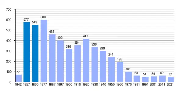 | Gráfica de evolución demográfica de Cava[3] entre 1842 y 2021 |