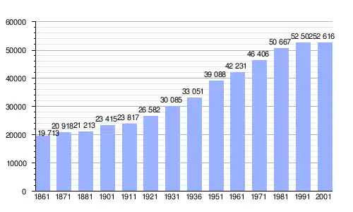 | Gráfica de evolución demográfica de Cava de' Tirreni entre 1861 y 2001 |