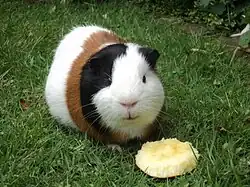 Cavia porcellus, conocido como cuy,[1] cuyi, cuye,[2] cuyo,[3] cuis,[4] cobaya,[5] curiel,[6] acure,[7] o conejillo de Indias,[8] es una especie de roedor perteneciente a la familia Caviidae y al género Cavia. Se originaron en los Andes de América del Sur, y los estudios basados en la bioquímica y la hibridación sugieren que son descendientes domesticados de la especie Cavia tschudii, estrechamente relacionada al cuy doméstico, y, por lo tanto, no existen naturalmente en la naturaleza.[9][10] Fueron domesticados originalmente como ganado para fuente de alimento, y todavía se consume en los países andinos.[11]