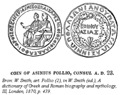- P. von Rohden, "Asinius 26)", RE, vol. II-2, Stuttgart, 1896, cols. 1602-1603.