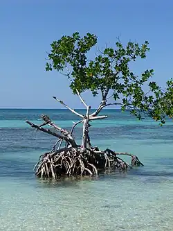 Aunque técnicamente no son plantas marinas, los manglares son árboles y arbustos que crecen a lo largo de las costas tropicales y subtropicales, incluso dentro de las regiones costeras del Parque Nacional Los Cayos de San Felipe. Los manglares están adaptados a condiciones salinas y proporcionan un hábitat de cría para peces juveniles y otras especies marinas. También ayudan a proteger las zonas costeras de la erosión y los daños causados por las tormentas. Las algas marinas son de gran tamaño y se pueden encontrar adheridas a sustratos o flotando libremente en el agua. Contribuyen a las redes tróficas marinas, proporcionando alimento y hábitat para una amplia gama de organismos marinos.
