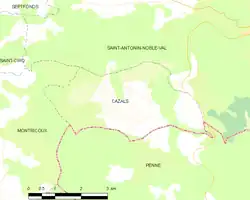 Cazals es una población y comuna francesa, en la región de Mediodía-Pirineos, departamento de Tarn y Garona, en el distrito de Montauban y cantón de Saint-Antonin-Noble-Val.
