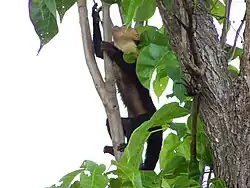 Las presas de insectos que come incluyen larvas de escarabajos, orugas de mariposas y polillas, hormigas, avispas y larvas de hormigas y avispas.[8]También come presas más grandes, como pájaros, huevos de pájaros, ranas, lagartos, cangrejos, moluscos y pequeños mamíferos.[8][54]La población de Guanacaste, Costa Rica, en particular, es conocida por cazar ardillas, urracas, loros de corona blanca[8]y crías de coatí.[55]La cantidad de presas vertebradas que come varía según la tropa.[8]Incluso las tropas vecinas pueden mostrar diferencias significativas en sus dietas.[49]