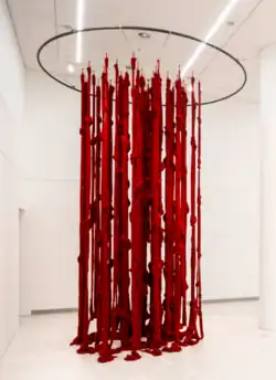 Sus Quipu son poemas espaciales, esculturas monumentales, instalaciones y performances realizados con lana e inspirados en el complejo método andino de registrar información mediante hilos y nudos.[110]