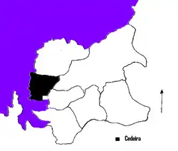 - ↑ Miralbes Bedera, Rosario; de Torres Luna, María Pilar; Rodríguez Martínez-Conde, Rafael (1979). «Cedeira». Mapa de límites de las parroquias de Galicia. Santiago de Compostela: Imprenta Paredes. p. 14. ISBN 8460014142.