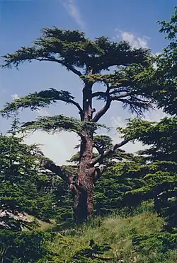 El Cedrus libani, comúnmente conocido como cedro del Líbano,[2] es una especie de cedro nativa de las montañas de la cuenca del Mediterráneo Oriental. Es una conífera acicufolia de hoja perenne que puede alcanzar los 40 m de altura. Es el emblema nacional del Líbano y se usa ampliamente como árbol ornamental en parques y jardines.