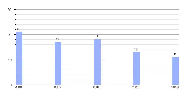 | Gráfica de evolución demográfica de Cela (aldea) entre 2000 y 2019 |
