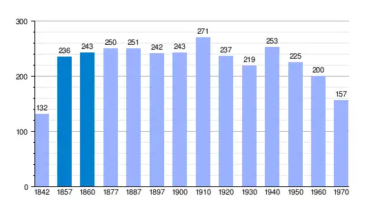 Gráfica de evolución demográfica de Celadilla Sotobrín[3]​ entre 1842 y 1970