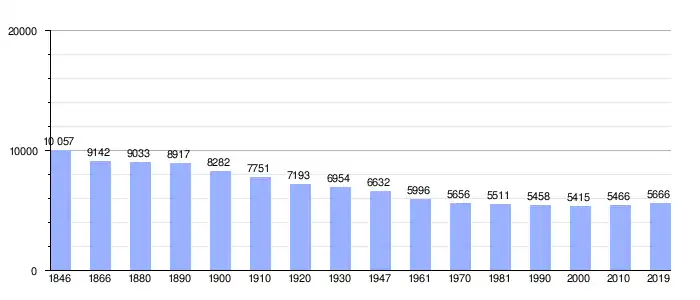 | Gráfica de evolución demográfica de Celles entre 1846 y 2019 |