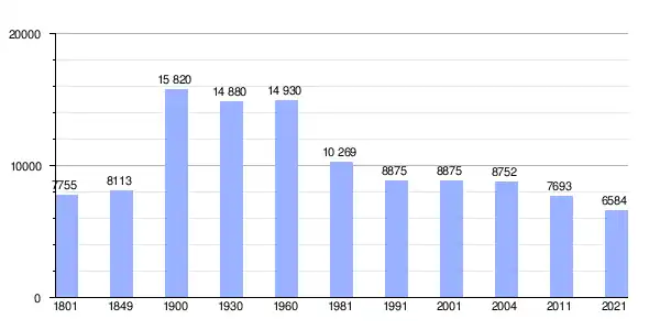 | Gráfica de evolución demográfica de Celorico da Beira entre 1801 y 2021 |