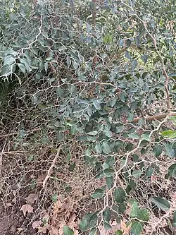 - ↑ Es apreciada por algunas especies de aves que anidan en él, como la calandria y el espinero chico, debido a la protección que ofrece su denso follaje y la producción de pequeños frutos naranjados y dulces, que son comestibles para el ser humano también.