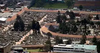 El cementerio central de Bogotá es el cementerio más antiguo y reputado en la ciudad de Bogotá, capital de Colombia.[1] Fue construido por Pío Domínguez y Nicolás León, según los planos de Domingo Esquiaqui y puesto en servicio en 1836 por el gobernador Rufino Cuervo, bajo la presidencia de Francisco de Paula Santander.[2] La portada fue obra de Julián Lombana en 1905,[3] algunos de los mausoleos han sido construidos por reconocidos escultores como Pietro Tenerani y Césare Sighinolfi. El cementerio se encuentra ubicado en el barrio Santa Fe, en la localidad de Los Mártires, frente a la avenida El Dorado con carrera 20. Por su significado histórico, valor arquitectónico y cultural fue declarado monumento nacional por el decreto 2390 del 26 de septiembre de 1984.[4]