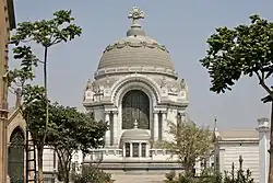 Portada de entrada y capilla central de estilo neoclásico (demolida). Fotografía de 1866.