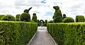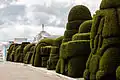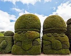 La zona de jardines tiene una extensión de más de cuatro hectáreas con 300 o más figuras que tienen variadas formas representativas de la flora y fauna del Ecuador y de las culturas romanas, griega, inca, azteca y egipcia, divididas en dos zonas: la primera ubicada en la parte frontal del cementerio, conocida como “Parque de los Recuerdos” y la segunda ubicada en la parte posterior, bautizada con el nombre de “Altar de Dios”.[1]