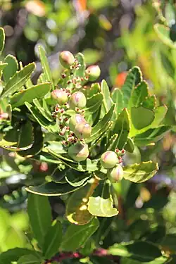 - ↑ a b c Department of Primary Industries, Parks, Water and Environment. «Cenarrhenes nitida Notesheet». Flora of Tasmania. Government of Tasmania. Archivado desde el original el 2 de abril de 2012. Consultado el 22 de septiembre de 2012.