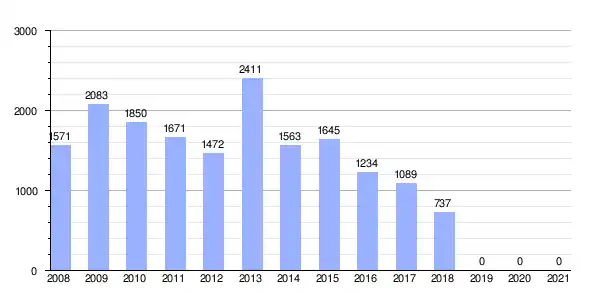 | Gráfica de evolución demográfica de Cenes de la Vega[4] entre 1842 y 2021 |