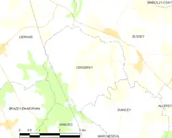 Censerey es una población y comuna francesa, en la región de Borgoña, departamento de Côte-d'Or, en el distrito de Beaune y cantón de Liernais.