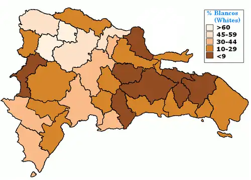 Porcentaje de la población blanca por provincias en la República Dominicana, de acuerdo con datos del censo de 1950