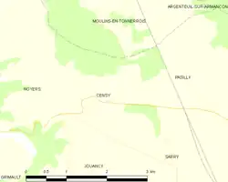 - Situación de Censy en un mapa de Francia y de comunas limítrofes Archivado el 7 de enero de 2009 en Wayback Machine. (en francés)