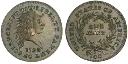 - ↑ «1792 Silver-Center Cent». CoinFacts.com. Collectors Universe, Inc. 1999–2006.