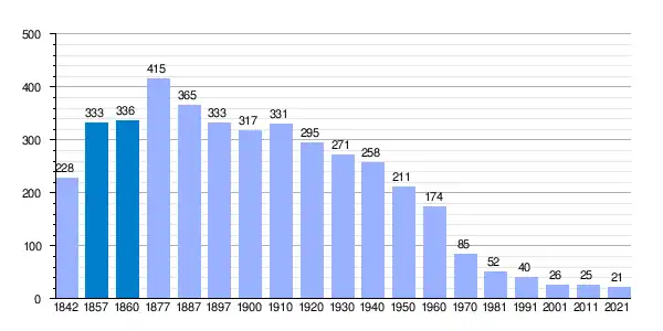 | Gráfica de evolución demográfica de Centenera de Andaluz[3] entre 1842 y 2021 |