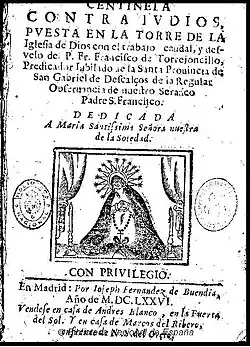 Centinela contra judíos es el título de un libro antisemita de fray Francisco de Torrejoncillo de 1674 en el que aparecen los tópicos antijudíos dirigidos hacia los conversos.