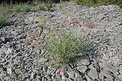 Planta perenne, lampiña. Hojas estrechas, lanceoladas, de color verde grisáceo, con pocos nervios laterales paralelos al principal. Flores rosas de 7-9 mm dispuestas en ramilletes densos, planos en su porción superior.[1]
