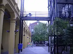 Patio del Tilo y escalera metálica.