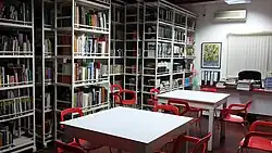Mediateca; funciona como espacio de coworking, cuenta con un colección especializada en arte y diversidad, y custodia títulos de la filmoteca de la Cooperación Española.