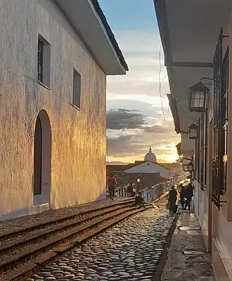 Vista de la Catedral Metropolitana de Popayán y el Centro Histórico de Popayán, desde la Calle de Santa Catalina (Calle 5)
