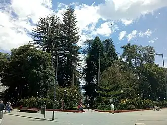Catedral de Popayán vista desde el Parque Caldas durante el atardecer