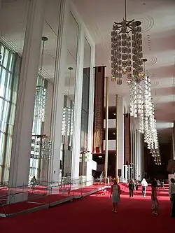 - La Opera House o Casa de la Opera, en el medio del edificio, tiene capacidad para 2300 personas. Su interior está decorado con terciopelo rojo, una distintiva cortina de seda roja y color oro (regalo de Japón) y una lámpara de araña de cristal Lobmeyr que fue regalo de Austria.