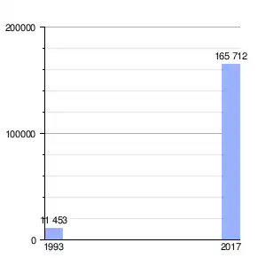 | Gráfica de evolución demográfica de Centro Urbano San Martín entre 1993 y 2017 |