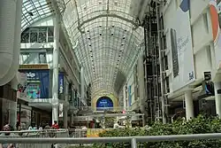 El Passage des Panoramas se inauguró en París en 1798.[14] El Burlington Arcade de Londres se inauguró en 1819. The Arcade en Providence, Rhode Island introdujo el concepto de galería comercial en Estados Unidos en 1828 y es posiblemente el "centro comercial" más antiguo del país.[15] La Galleria Vittorio Emanuele II de Milán, Italia, le siguió en la década de 1870 y se acerca más a los grandes centros comerciales modernos en cuanto a amplitud. Otras grandes ciudades crearon galerías y centros comerciales a finales del siglo XIX y principios del XX, como el Cleveland Arcade y el GUM de Moscú, inaugurado en 1890. El Cleveland Arcade, inaugurado en 1890, fue uno de los primeros centros comerciales cubiertos de Estados Unidos y, al igual que sus homólogos europeos, constituyó un triunfo arquitectónico. Dos de sus lados tenían 1.600 cristales enmarcados en hierro, y es un excelente ejemplo de arquitectura victoriana. El Queen Victoria Markets Building de Sídney, inaugurado en 1898, también fue un ambicioso proyecto arquitectónico.